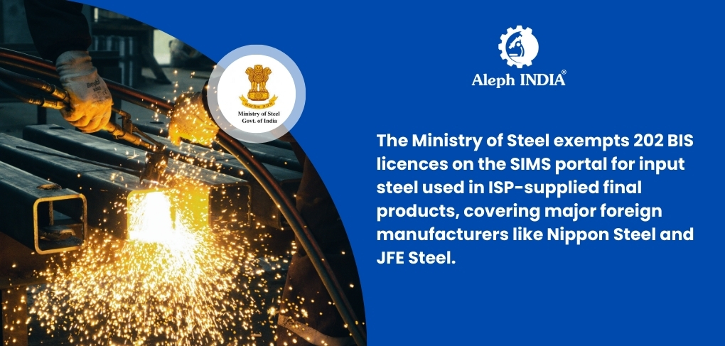Ministry of Steel exempts 202 BIS licences on SIMS for input steel supplied by ISPs — August 2025 update